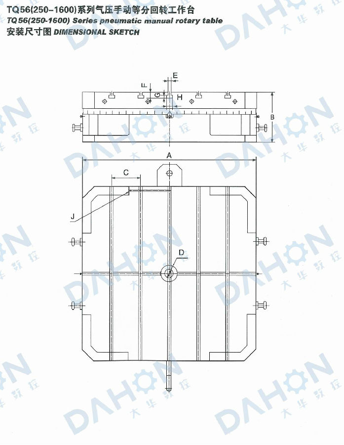 • 產(chǎn)品名稱: TQ56(250-2000)系列氣壓手動等分回轉(zhuǎn)工作臺(分站)