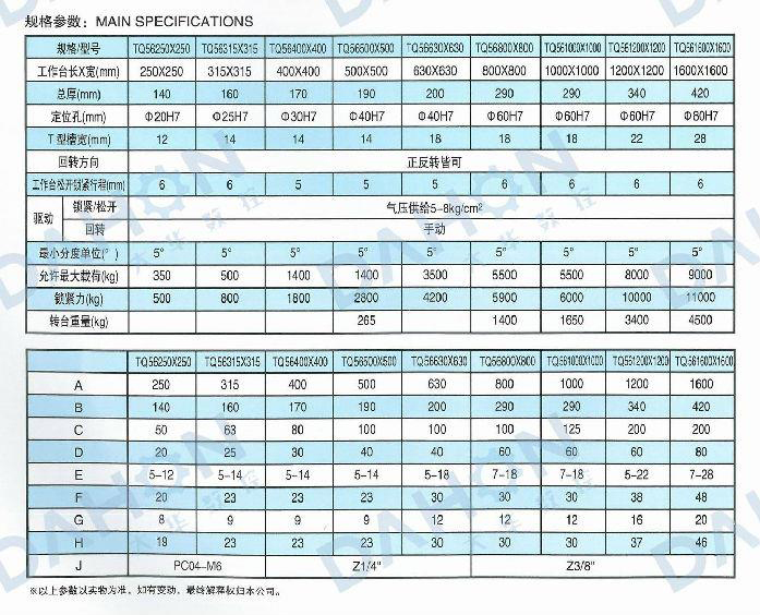 TQ56(250-2000)系列氣壓手動等分回轉(zhuǎn)工作臺(分站)